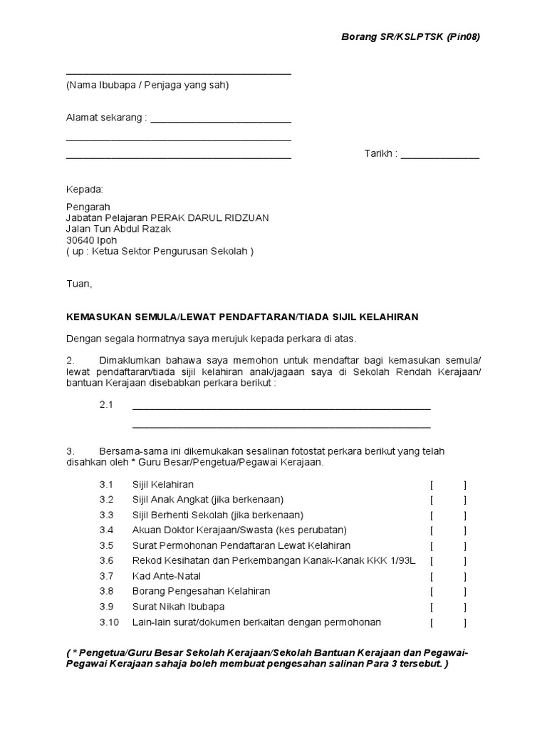 Contoh Borang Permohonan Bersekolah Semula Kerana Beberapa Faktor Pdf