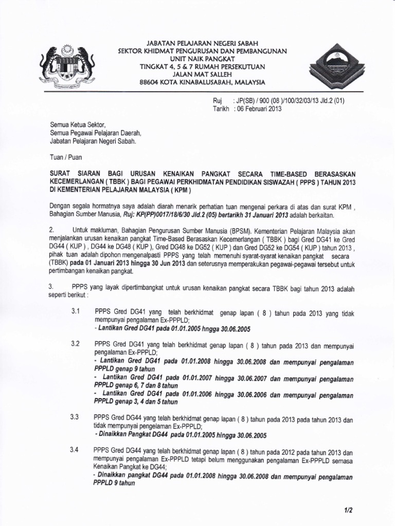 PELAKSANAAN KENAIKAN PANGKAT SECARA TIME-BASED BERASASKAN KECEMERLANGAN BAGI PEGAWAI KUMPULAN PERLAKSANA YANG BERKHIDMAT 13 TAHUN ATAU LEBIH DI GRED LANTIKAN KEMENTERIAN KERJA RAYA MALAYSIA 1. Borang penilaian kenaikan pangkat time base Guru-guruPenolong Kanan yang layak untuk kenaikan pangkat Time Base boleh muat turun borang-borang berkenaan mengikut kategori masing-masing. Cara Mengisi Borang Kenaikan Pangkat Dg44 Ke Dg48.