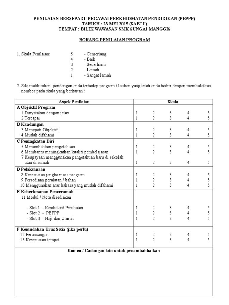 Menilai peningkatan sasaran Sebarang. Borang Markah Penilaian Bersepadu Pegawai Perkhidmatan Pendidikan Pbppp.