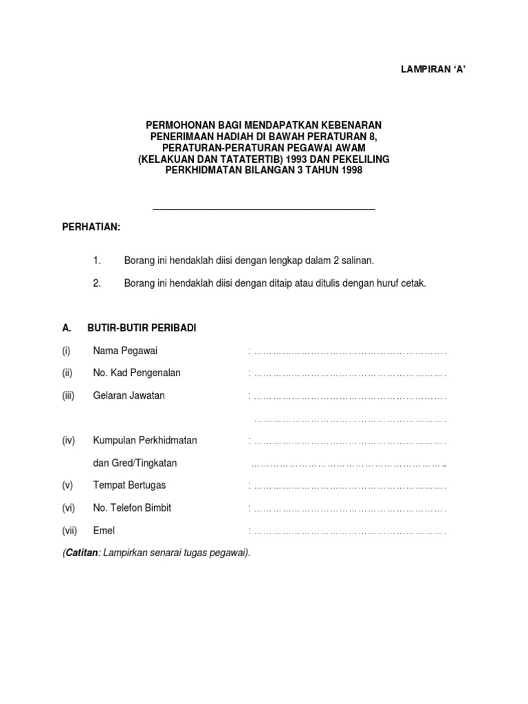 Borang Permohonan Bagi Mendapatkan Kebenaran Penerimaan Hadiah Lampiran A Pdf