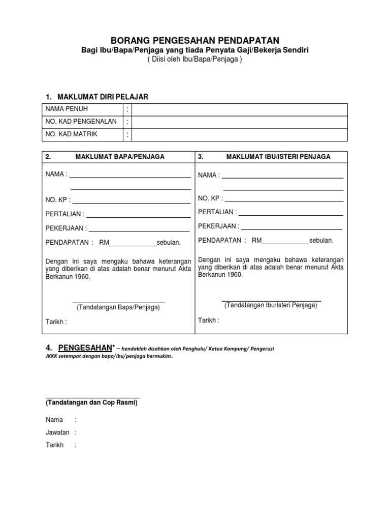 Borang Pengesahan Pendapatan Ibu Bapa Yang Bekerja Sendiri Pdf
