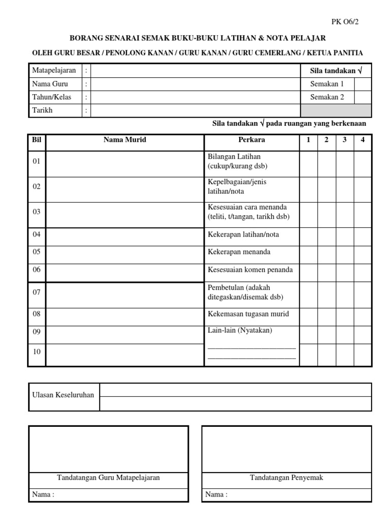 Borang pk 06 1 rekod semakan kerja murid edit cute766. Visual buku nota tidak perlu dihantar untuk semakan. Borang semakan buku latihan murid.